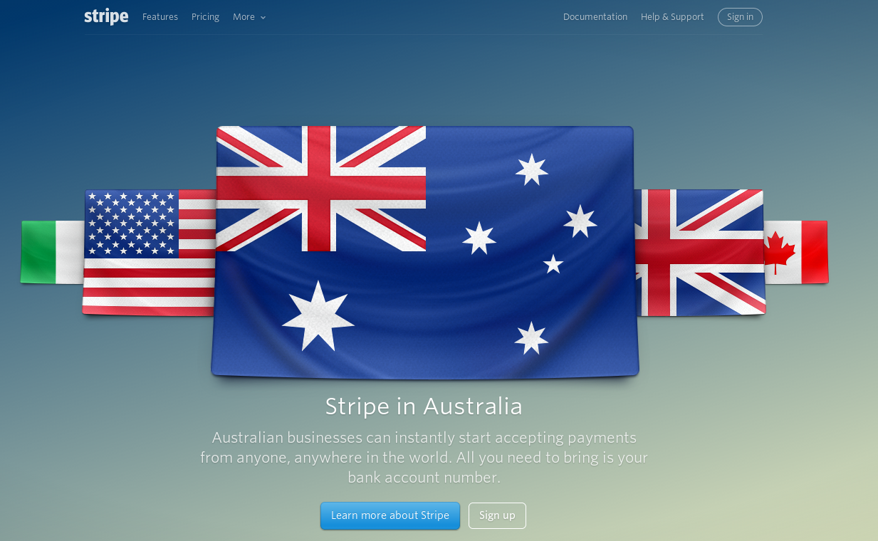 Starting today, Australian businesses can instantly start accepting payments from anyone, anywhere in the world through Stripe (now out of Beta).