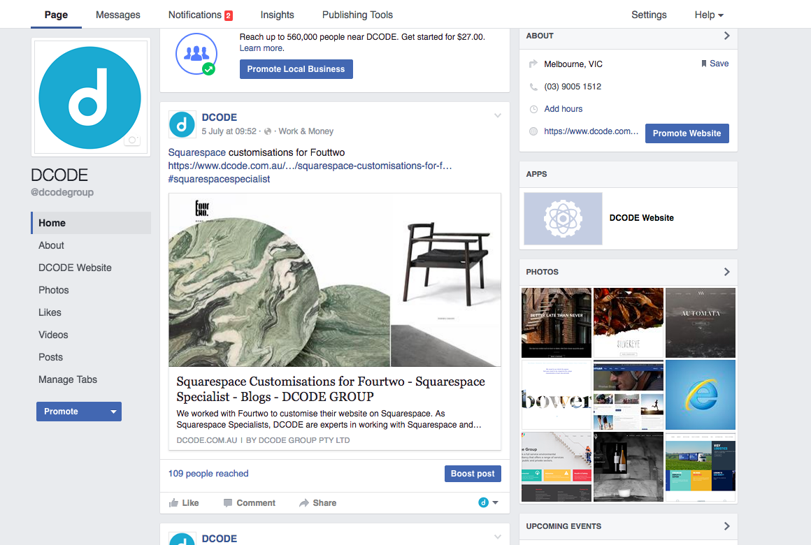 To see what the new pages look like, take a look at the DCODE GROUP Facebook page: