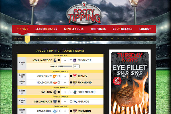 "In a short period of time (only a few weeks), we were able to build a footy tipping website (with back-end management console) to help the client build and launch their competition."