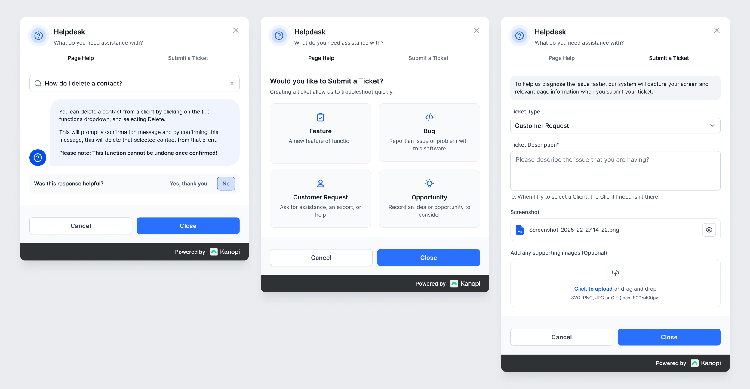 Today, we’re excited to share the next layer of the experience - Kanopi’s embeddable help desk with integrated support ticketing.